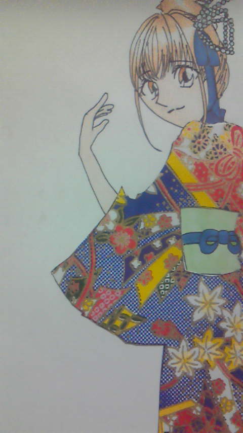 虹野 七虹架様:オリジナル年賀イラスト(振り袖姿の女の子)